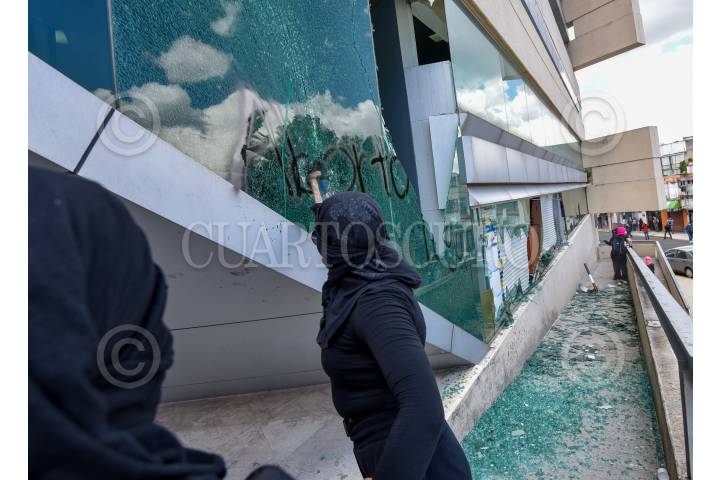 TOLUCA, ESTADO DE MÉXICO, 28SEPTIEMBRE2021.- Mujeres y diversas colectivas del Estado de México realizaron una movilización en la acción global por un aborto seguro, libre y gratuito, caminaron por diversas calles de la capital mexiquense hasta llegar a la Cámara de Diputados; momentos antes tuvieron al altercado con policías municipales que resguardaban la Catedral de Toluca, rompieron vidrios, realizaron pintas y abrieron las puertas metálicas que protegen el recinto legislativo. FOTO: CRISANTA ESPINOSA AGUILAR /CUARTOSCURO.COM