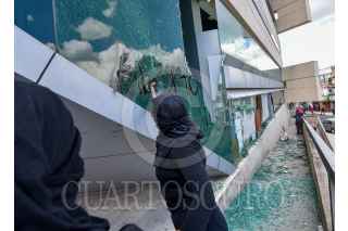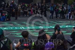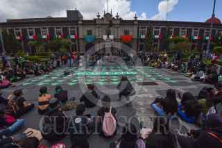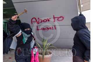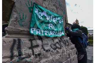 TOLUCA, ESTADO DE MÉXICO, 28SEPTIEMBRE2021.- Mujeres y diversas colectivas del Estado de México realizaron una movilización en la acción global por un aborto seguro, libre y gratuito, caminaron por diversas calles de la capital mexiquense hasta llegar a la Cámara de Diputados; momentos antes tuvieron al altercado con policías municipales que resguardaban la Catedral de Toluca, rompieron vidrios, realizaron pintas y abrieron las puertas metálicas que protegen el recinto legislativo. FOTO: CRISANTA ESPINOSA AGUILAR /CUARTOSCURO.COM
