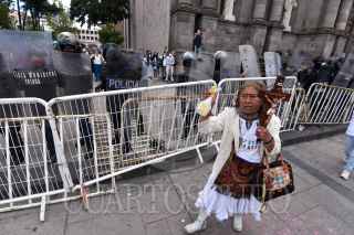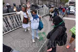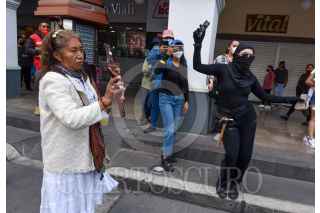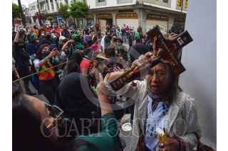TOLUCA, ESTADO DE MÉXICO, 28SEPTIEMBRE2021.- Una mujer con un crucifijo y una botella con agua bendita roció a las mujeres que participaron en la movilización por el aborto seguro, libre y gratuito. FOTO: CRISANTA ESPINOSA AGUILAR /CUARTOSCURO.COM