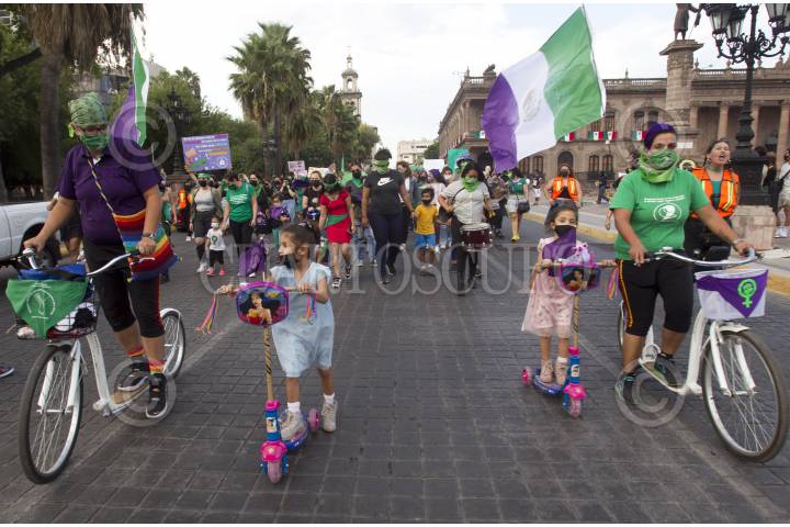 MONTERREY, NUEVO LEÓN, 28SEPTIEMBRE2021.- Mujeres de La Asamblea Feminista de Nuevo León, compuesta por diversas agrupaciones, marcharon por las calles del centro de Monterrey para sumarse a la acción colectiva nacional del 28S "rAborta y la pastilla abortiva" dentro de La Acción Global por un Aborto Seguro y Legal. FOTO: GABRIELA PÉREZ MONTIEL / CUARTOSCURO.COM