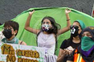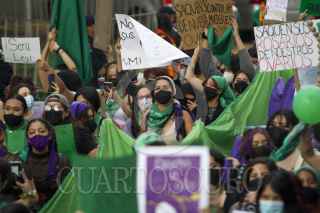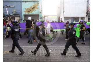 MONTERREY, NUEVO LEÓN, 28SEPTIEMBRE2021.- Mujeres de La Asamblea Feminista de Nuevo León, compuesta por diversas agrupaciones, marcharon por las calles del centro de Monterrey para sumarse a la acción colectiva nacional del 28S "rAborta y la pastilla abortiva" dentro de La Acción Global por un Aborto Seguro y Legal. FOTO: GABRIELA PÉREZ MONTIEL / CUARTOSCURO.COM