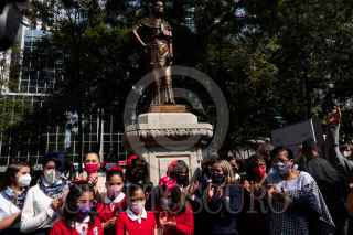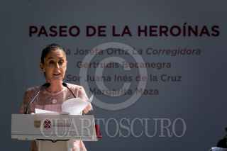 CIUDAD DE MÉXICO, 29SEPTIEMBRE2021.- Claudia Sheinbaum, jefa de gobierno de la Ciudad de México, en compañía de: Vanessa Bohórquez, secretaría de Cultura capitalina; Nashielli Ramírez, Ombudsman capitalina, así como alumnas de diversos planteles educativos, develó cuatro nuevas estatuas del Paseo de las Heroínas. Las esculturas corresponden a: Josefa Ortiz Crescencia Ortiz Téllez-Girón, Gertrudis Bocanegra, Sor Juana Inés De La Cruz y Margarita Maza, y buscan reivindicar la visión que se tiene respecto a las mujeres en la historia del país. FOTO: GALO CAÑAS/CUARTOSCURO.COM