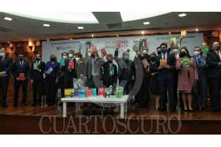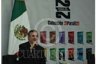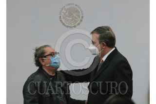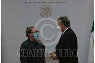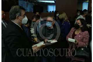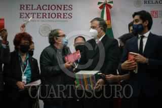 CIUDAD DE MÉXICO, 29SEPTIEMBRE2021. - Marcelo Ebrard Casaubon, secretario de Relaciones Exteriores (SRE) y Paco Ignacio Taibo II, director del fondo de Cultura Económica (FCE) presidieron la entrega de la colección “21 para el 21” del FCE a la Secretaría de Relaciones Exteriores. FOTO: ANDREA MURCIA /CUARTOSCURO.COM