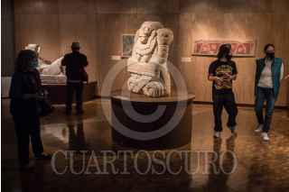 CIUDAD DE MÉXICO, 29SEPTIEMBRE2021.- Personas asisten a observar las más de mil 500 piezas arqueológicas que comprenden la exposición “La Grandeza de México” instalada en el Museo Nacional de Antropología. FOTO: MARIO JASSO/CUARTOSCURO.COM