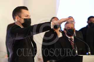 MONTERREY, NUEVO LEÓN, 30SEPTIEMBRE2021.- Luis Donaldo Colosio Riojas toma protesta como alcalde de Monterrey en el Palacio Municipal acompañado de su familia, Jaime Rodríguez; gobernador del estado, Samuel García; gobernador electo y autoridades estatales y federales. FOTO: CUARTOSCURO.COM