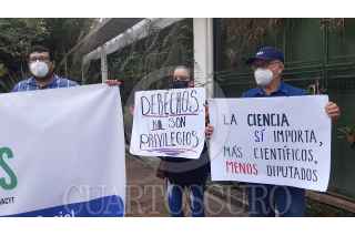 XALAPA, VERACRUZ, 30SEPTIEMBRE2021.- Los investigadores del Consejo Nacional de Ciencia y Tecnología (Conacyt) se manifestaron en las instalaciones del Instituto de Ecología (Inecol) en Xalapa, exigen la revisión del contrato colectivo de trabajo. Esta manifestación se realizó de manera simultánea en Aguascalientes, Mérida, Oaxaca, México y Chiapas. FOTO: YERANIA ROLÓN /CUARTOSCURO.COM