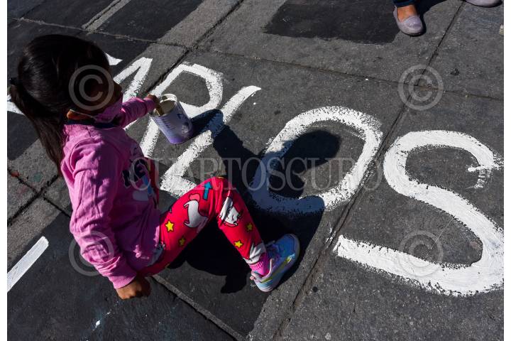 TOLUCA, ESTADO DE MÉXICO, 30SEPTIEMBRE2021.- Integrantes de Haz Valer mi Libertad y familiares de personas presas presuntamente inocentes realizaron la pinta de nombres de sus familiares presos, con la actividad llamada “Remarcando la libertad de los nadies” en frente de la Cámara de Diputados y una parte de la Plaza de los Mártires, para exigir sea integrada la Comisión Especial de Amnistía en la LXI Legislatura local, la cual ha sido retrasada ante la falta de acuerdo entre los diputados para para integrar las comisiones legislativas, y así puedan ser analizados los casos que presentan fallas judiciales y puedan ser liberados. FOTO: CRISANTA ESPINOSA AGUILAR /CUARTOSCURO.COM