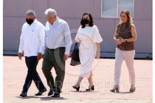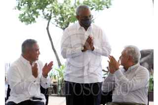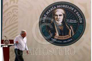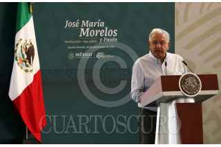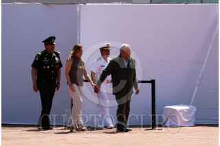 JOJUTLA, MORELOS, 30SEPTIEMBRE2021. El presidente Andrés Manuel López Obrador, acompañado del primer ministro de Belice, Juan Antonio Briseño, conmemoro el 256 aniversario del natalicio de José María Morelos y Pavón. El evento oficial se realizó en la Arena de Tequesquitengo, ahí el primer mandatario aseguro que en su administración se acabó con la pesadilla del neoliberalismo. Acompañaron al presidente, el canciller Marcelo Ebrard, la senadora Olga Cordero, el general Luis Crescencio Sandoval González, el almirante José Rafael Ojeda Duran, Cuauhtémoc Blanco, gobernador de Morelos, la secretaria de Cultura Alejandra Frausto. FOTO: MARGARITO PÉREZ RETANA / CUARTOSCURO.COM