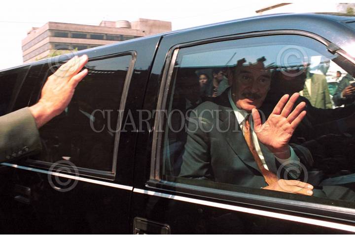 Elementos del Estado Mayor Presidencial intentan deslojar a una indigente que gritaba: "Rosario; no que la calle es de todos...", a las afueras del Museo de San Carlos donde el presidente electo Vicente Fox anunciaba a los miembros del sector social de su gabinete. FOTO: Victoria Valtierra/CUARTOSCURO.COM