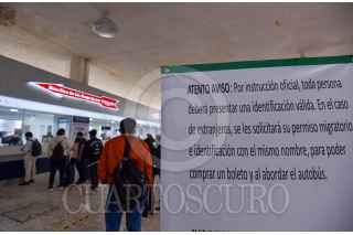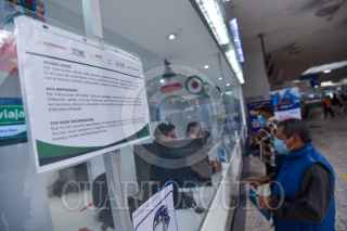 TOLUCA, ESTADO DE MÉXICO, 30SEPTIEMBRE2021.- En la Terminal de Autobuses de Toluca fueron instalados letreros en donde informan a los usuarios que para poder comprar un boleto y abordar los autobuses es necesario presentar una identificación oficial válida y en caso de ser extranjeros se les solicitará su permiso migratorio e identificación con el mismo nombre, esto ante el incremento en el número de migrantes en la República Mexicana . FOTO: CRISANTA ESPINOSA AGUILAR /CUARTOSCURO.COM