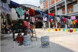 CIUDAD DE MÉXICO, 30SEPTIEMBRE2021.- Migrantes en su mayoría haitianos, han llegado a la ciudad ya no con la intención de seguir su camino hacia la frontera norte, sino con la idea de quedarse a radicar en la capital o en algún otro estado. Debido a esta oleada migratoria albergues como Casa de Acogida Formación y Empoderamiento de la Mujer Migrante y Refugiada (CAFEMIN), ya cuenta con su máxima ocupación atendiendo a 200 migrantes en sus instalaciones. El recinto lo encabeza la Hna. Magdalena Silva Rentería que con ayuda de voluntarios que apoyan en diversas actividades logran que los migrantes puedan tener una estadía digna en la ciudad. En este sentido el albergue CAFEMIN recibe donaciones tanto monetarias a la cuanta Santander 5579070087178474, como en especie directamente en sus instalaciones. FOTO: ROGELIO MORALES /CUARTOSCURO.COM