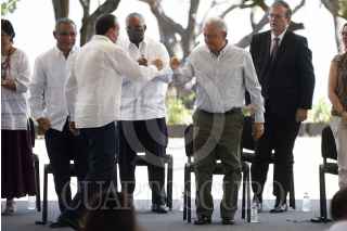 CUERNAVACA, MORELOS, 28SEPTIEMBRE2021. JOJUTLA, MORELOS, 30SEPTIEMBRE2021. El presidente Andrés Manuel López Obrador, acompañado del primer ministro de Belice, Juan Antonio Briseño, conmemoro el 256 aniversario del natalicio de José María Morelos y Pavón. El evento oficial se realizó en la Arena de Tequesquitengo, ahí el primer mandatario aseguro que en su administración se acabó con la pesadilla del neoliberalismo. Acompañaron al presidente, el canciller Marcelo Ebrard, la senadora Olga Cordero, el general Luis Crescencio Sandoval González, el almirante José Rafael Ojeda Duran, la secretaria de Cultura Alejandra Frausto. En la imagen la intervención del gobernador de Morelos, Cuauhtémoc Blanco. FOTO: MARGARITO PÉREZ RETANA / CUARTOSCURO.COM. FOTO: ESPECIAL / CUARTOSCURO.COM