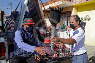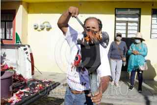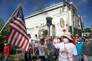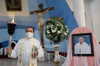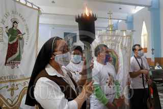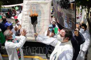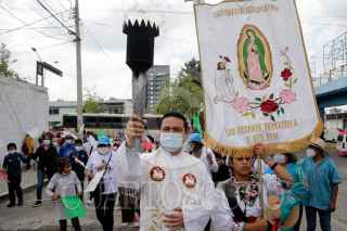PUEBLA, PUEBLA, 30SEPTIEMBRE2021.- La Antorcha Guadalupana llegó a la capital poblana como parte de la peregrinación anual que realizan hacia Nueva York visitando 9 estados de nuestro país y 3 de Estados Unidos. Esta vez los feligreses que acompañan a la antorcha realizaron un homenaje al padre Gustavo Rodríguez Zárate, defensor de los derechos de los migrantes, quien falleció el año pasado. FOTO: MIREYA NOVO/CUARTOSCURO.COM