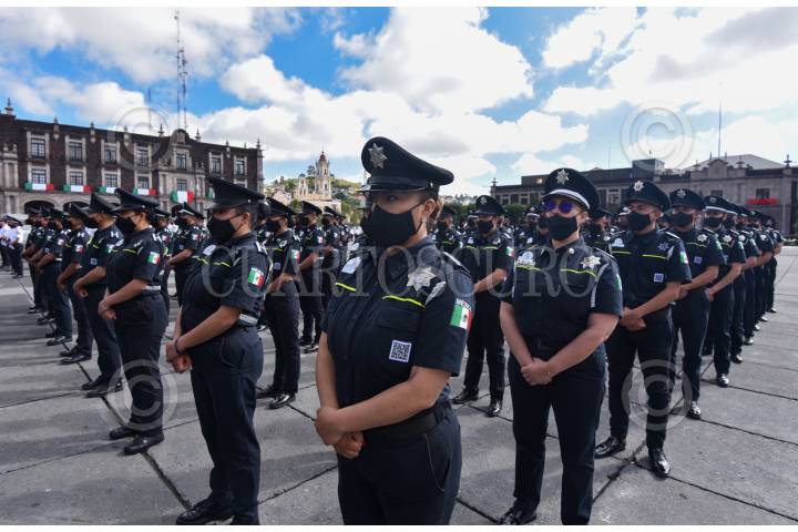 TOLUCA, ESTADO DE MÉXICO, 01OCTUBRE2021.- 241 Cadetes de Toluca se graduaron este día como policías municipales, 100 serán policías viales y 141 realizarán tarea de seguridad, el acto fue encabezado por el alcalde Juan Rodolfo Sánchez Gómez. Familiares celebraron la graduación de estos cadetes. FOTO: CRISANTA ESPINOSA AGUILAR /CUARTOSCURO.COM