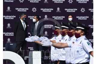 TOLUCA, ESTADO DE MÉXICO, 01OCTUBRE2021.- 241 Cadetes de Toluca se graduaron este día como policías municipales, 100 serán policías viales y 141 realizarán tarea de seguridad, el acto fue encabezado por el alcalde Juan Rodolfo Sánchez Gómez. Familiares celebraron la graduación de estos cadetes. FOTO: CRISANTA ESPINOSA AGUILAR /CUARTOSCURO.COM