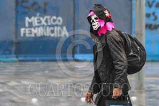 CIUDAD DE MÉXICO, 01OCTUBRE2021.- Hombre con la máscara del luchador de la Parka, camina por la Alameda Central, frente a las barricadas para la protección del Palacio de Bellas Artes. FOTO: ROGELIO MORALES /CUARTOSCURO.COM
