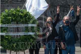 CIUDAD DE MÉXICO, 02OCTUBRE2021.- Claudia Sheinbaum, jefa de Gobierno, encabezó la ceremonia en conmemoración del 53 Aniversario de la Matanza del 2 de Octubre, en la Plaza de las Tres Culturas. Estuvieron presentes: Alejandro Encinas Rodríguez, subsecretario de Derechos Humanos, Población y Migración de la Secretaría de Gobernación; Martí Batres Guadarrama, secretario de Gobierno; Vannesa Bohórquez López, secretaria de Cultura; Héctor Díaz Polanco, presidente de la Mesa Directiva del Congreso de la Ciudad de México; Rafael Guerra Álvarez, magistrado presidente del Poder Judicial de la Ciudad de México; Eduardo Villegas Megías, coordinador de Memoria Histórica y Cultural de México; Sandra Cuevas, alcaldesa de Cuauhtémoc; Paco Ignacio Taibo II, director general del Fondo de Cultura Económica; Félix Hernández Gamundi, integrante del Comité 68 Pro Libertades Democráticas, y José de Jesús Martín del Campo Castañeda, ex líder del movimiento estudiantil de 1968. FOTO: MARIO JASSO/CUARTOSCURO.COM