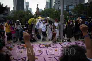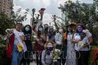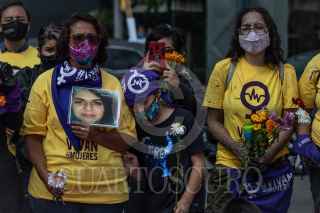CIUDAD DE MÉXICO, 03OCTUBRE2021.- Madres y familiares de víctimas, sobrevivientes de feminicidio y desaparición forzada, acompañada de colectivas feministas y defensoras de derechos humanos, realizaron una ofrenda para renombrar a la glorieta de Colón ubicada en Avenida Reforma como “Glorieta de las mujeres que luchan”. FOTO: ANDREA MURCIA /CUARTOSCURO.COM
