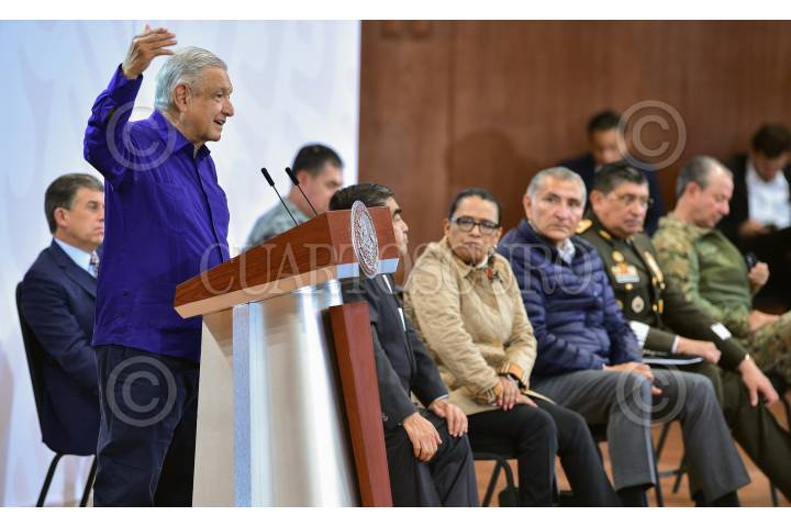 PUEBLA, PUEBLA, 04OCTUBRE20212021.- Andrés Manuel López Obrador, Presidente Constitucional de los Estados Unidos Mexicanos, durante su conferencia matutina. Acompañaron al mandatario: Miguel Barbosa Huerta, gobernador del Estado de Puebla; Rosa Icela Rodríguez Velázquez, secretaria de Seguridad y Protección Ciudadana; Luis Cresencio Sandoval González, secretario de la Defensa Nacional; José Rafael Ojeda Durán, secretario de Marina; Luis Rodríguez Bucio, comandante de la Guardia Nacional y Ricardo Sheffield Padilla, titular de la Procuraduría Federal del Consumidor (Profeco). FOTO: PRESIDENCIA/CUARTOSCURO.COM