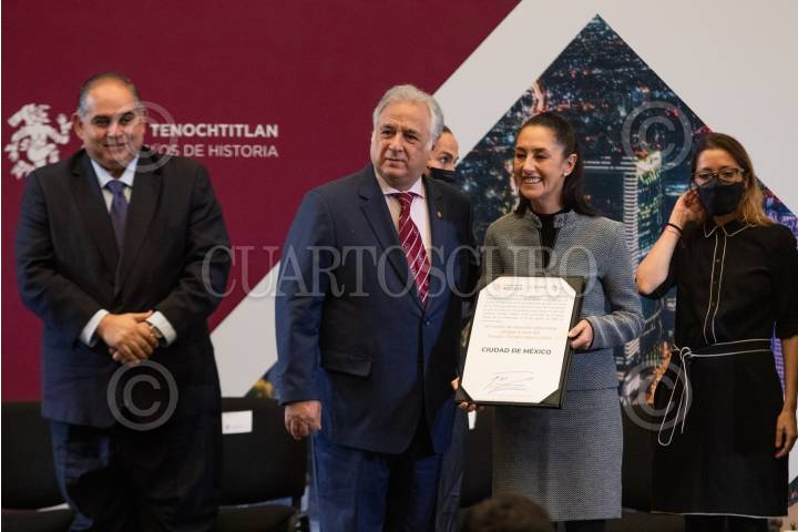 CIUDAD DE MÉXICO, 04OCTUBRE2021.- Claudia Sheinbaum Pardo, Jefa de Gobierno; Miguel Torruco Marqués, secretario de Turismo Federal y Paola Félix, secretaria de Turismo de la Ciudad de México, anunciaron que el Tianguis Turístico México 2023 tendrá como sede la Ciudad de México. FOTO: MOISÉS PABLO/CUARTOSCURO.COM