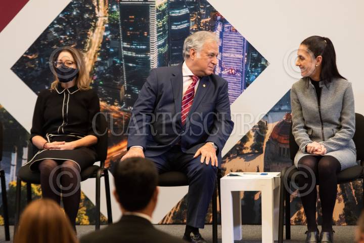 CIUDAD DE MÉXICO, 04OCTUBRE2021.- Claudia Sheinbaum Pardo, Jefa de Gobierno; Miguel Torruco Marqués, secretario de Turismo Federal y Paola Félix, secretaria de Turismo de la Ciudad de México, anunciaron que el Tianguis Turístico México 2023 tendrá como sede la Ciudad de México. FOTO: MOISÉS PABLO/CUARTOSCURO.COM