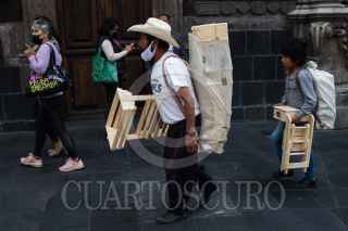 CIUDAD DE MÉXICO, 04OCTUBRE2021.- Padre e hijo venden sus muebles de madera en las calles del Centro Histórico. FOTO: MOISÉS PABLO/CUARTOSCURO.COM