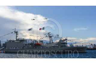 VERACRUZ, VERACRUZ, 04OCTUBRE2021.- El Jefe del Ejecutivo, Andrés Manuel López Obrador, presenció un desfile y una maniobra de rescate en altamar por parte de los integrantes de la Armada de México, quienes están de festejando 200 años de su creación. FOTO: CRISTIAN HERNÁNDEZ/CUARTOSCURO.COM