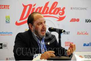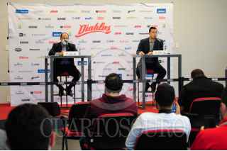 CIUDAD DE MÉXICO, 05OCTUBRE2021.- Directivos del equipo de béisbol, Diablos Rojos del México, anunciaron mediante una conferencia de prensa la participación del equipo en una liga invernal apartir de este año, con la que contarán con la participación de jóvenes promesas provenientes de su academia además de leyendas del club como entrenadores de lo jugadores. La conferencia fue encabezada por Othón Díaz, presidente ejecutivo del equipo y Jorge del Valle, gerente deportivo de los Diablos. FOTO: DANIEL AUGUSTO /CUARTOSCURO.COM