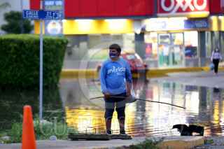 MÉRIDA, YUCATÁN, 05OCTUBRE2021.- Una fuerte lluvia al poniente de Mérida provoco inundaciones en diversas zonas; personal del ayuntamiento trabaja con bombas para drenar el agua en calles intransitables. FOTO: FRANCISCO BALDERAS/CUARTOSCURO.COM