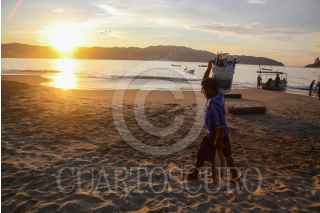 ACAPULCO, GUERRERO, 06OCTUBRE2021.- Vida cotidiana en la tradicional playa Las Hamacas, en donde pescadores desde muy temprano inician sus actividades ofreciendo pescado fresco a las personas que llegan al lugar. FOTO: CARLOS ALBERTO CARBAJAL/CUARTOSCURO.COM