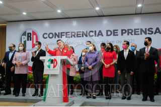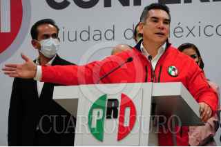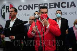 CIUDAD DE MÉXICO, 06OCTUBRE2021.- Alejandro Moreno, dirigente y diputado del Partido Revolucionario Institucional (PRI) ofreció una conferencia de prensa donde presentó a los nuevos integrantes del Comité Ejecutivo Nacional del partido político. FOTO:DANIEL AUGUSTO /CUARTOSCURO.COM