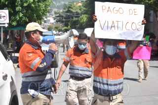 CHILPANCINGO, GUERRERO, 06OCTUBRE2021.- Trabajadores operativos de la Secretaría de Protección Civil Guerrero (SPCG), marcharon este miércoles en Chilpancingo para exigir al titular de esta dependencia, Marco César Mayares Salvador y al gobernador, Héctor Astudillo Flores, mejoras laborales. Expresando que su protesta es con el propósito de exigirle a las autoridades estatales el pago de sus viáticos de los últimos dos meses para 400 elementos de todo el estado, son 170 pesos que les dan de viáticos por día trabajado. También están exigiendo aumento de salario, seguro de vida, bono sexenal, incremento del bono por el Día del Bombero, bono de riesgo, aumento del bono del Día del Padre, y dotación de equipo y herramientas para ofrecer, dijo, un servicio eficiente. FOTO: DASSAEV TÉLLEZ ADAME/CUARTOSCURO.COM