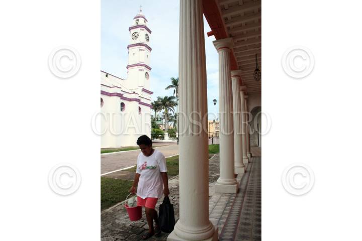TLACOTALPAN, VERACRUZ. 130CTUBRE2006.- El templo de San Cristobal, construido en el siglo XVIII, es una de las construcciones representativas de este poblado, tiene una estructura austera, los habitantes de clase media realizan ahi sus festividades. FOTO: PAOLA HIDALGO/CUARTOCURO.COM