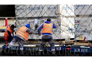CIUDAD DE MÉXICO, 07OCTUBRE2021.- Arribaron esta mañana, al Aeropuerto Internacional de la Ciudad de México, vacunas Spunik V. Fueron recibidas por el director de Birmex, Pedro Zenteno. FOTO: SECRETARIA DE ESTADO/CUARTOSCURO.COM