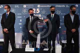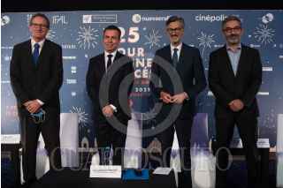 CIUDAD DE MÉXICO, 07OCTUBRE2021.- Cyril Anis, delegado general de la Federación de Alianzas Francesas de México; Alejandro Ramírez, director general de Cinépolis; Jean-Pierre Asvazadourian, embajador de Francia en México, y Leopoldo Jiménez, socio del Tour de Cine Francés y Nueva Era Films, anunciaron la programación del 25 Tour de Cine Francés, el cual solo contará con siete películas e inicia el 14 de octubre. FOTO: MOISÉS PABLO/CUARTOSCURO.COM