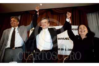 Carlos Imaz presidente estatal, Andrés Manuel López Obrador candidato al gobierno del D.F. y Amalia García presidenta nacional del PRD, festejan el triunfo del abanderado perredista en el primer debate que sostuvieron los abanderados del PRD, PAN y PRI en el club de industriales.