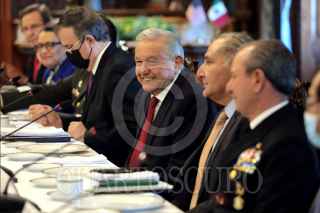 CIUDAD DE MÉXICO, 08OCTUBRE2021.- Andrés Manuel López Obrador, presidente de México, en compañía de secretarios del gabinete en materia de seguridad y relaciones exteriores sostuvieron la reunión con la comitiva del gobierno de Estados Unidos que participará en el Diálogo de Alto Nivel de Seguridad México-Estados Unidos (DANS) encabezada por: Antony Blinken, secretario de Estado de los Estados Unidos; Merrick B. Garland, fiscal general de los Estados Unidos, y Alejandro Mayorkas, secretario de Seguridad Nacional. FOTO: PRESIDENCIA/CUARTOSCURO.COM