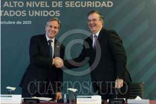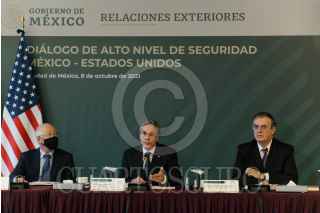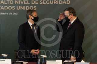 CIUDAD DE MÉXICO, 08OCTUBRE2021.- Marcelo Ebrard, secretario de Relaciones Exteriores, y Antony Blinken, secretario de Estado de los Estados Unidos, encabezaron la reunión "Diálogo de Alto Nivel de seguridad México-Estados Unidos". Estuvieron presentes: Alejandro Mayorkas, secretario de Seguridad Nacional de los Estados Unidos; Merrick B. Garland, Fiscal General de Estados Unidos; Ken Salazar, embajador de Estados Unidos en México; Adán Augusto López, secretario de Gobernación; Luis Cresencio Sandoval, secretario de la Defensa Nacional y Rafael Ojeda Durán, secretario de Marina. FOTO: MARIO JASSO/CUARTOSCURO.COM