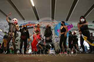 CIUDAD DE MÉXICO, 08OCTUBRE2021.- Vendedores de la Tianguis Disidente de la Glorieta de Insurgentes, realizaron una protesta pacífica para exigir a las autoridades que se respete su espacio de venta de productos. En dicha protesta integrantes de diversos colectivos realizaron bailes y actividades en el are en el que originalmente colocan sus puestos. FOTO: ROGELIO MORALES /CUARTOSCURO.COM
