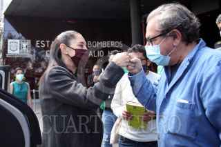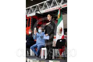 CIUDAD DE MÉXICO, 08OCTUBRE2021.- La jefa del Gobierno de la Ciudad de México, Claudia Sheinbaum Pardo, y el director del Fondo de Cultura Económica (FCE) Paco Ignacio Taibo II entregaron libros a integrantes del Heróico Cuerpo de Bomberos dentro del Programa 21 para el 21. Iniciativa que consta de otorgar de manra gratuita más de dos millones de ejemplares a lo largo y ancho del país, así como en las embajadas de México en el mundo. FOTO: JOAQUÍN MURRIETA/CUARTOSCURO.COM