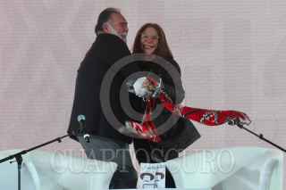 CIUDAD DE MÉXICO, 08OCTUBRE2021.- Se llevó acabo el relanzamiento del libro Pancho Villa y una Mujer Desnuda de la autora Sabina Berman, quien estuvo acompañada de Jesús Ochoa, actor mexicano, esto durante el primer día de la Feria Internacional del Libro en la Plancha del Zócalo. FOTO: ROGELIO MORALES /CUARTOSCURO.COM