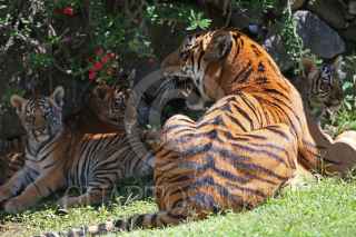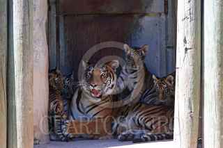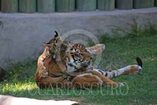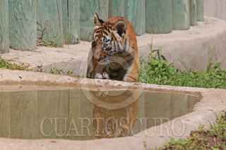 GUADALAJARA, JALISCO, 08OCTUBRE2021.- El pasado 3 de Julio nacieron en el Zoológico de Guadalajara cuatro cachorros de Tigre de Bengala dos hembras y dos machos, es la primera camada de Chitara, es una buena madre y permanece siempre al pendiente de sus crías, hijos de Albert su padre mismos nacidos bajo el cuidado humano. Alrededor del mundo los tigres de Bengala se encuentran en peligro de extinción por la destrucción de su hábitat y cacería y su único depredador es el ser humano. FOTO: FERNANDO CARRANZA GARCIA / CUARTOSCURO.COM