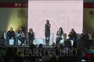 CIUDAD DE MÉXICO, 08OCTUBRE2021.- Claudia Sheinbaum, jefa de gobierno, Rafael Barajas, "El Fisgón", El monero Hernández, Elio Flores, Alma Muñoz Vannesa Bohórquez, titular de la Secretaría de Cultura, Monero Rapé, encabezaron la inauguración de la Feria Internacional del Libro y el homenaje a Antonio Helguera, la cual se llevará acabo del 8 al 17 de octubre en la plancha del Zócalo. FOTO: ROGELIO MORALES /CUARTOSCURO.COM