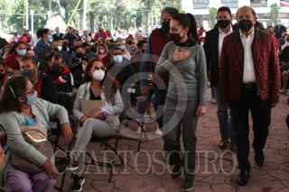 CIUDAD DE MÉXICO, 09OCTUBRE2021.- Claudia Sheinbaum, jefa de gobierno, Armando Quintero, alcalde de Iztacalco y Ancelmo Peña, titular del Instituto de Vivienda, encabezaron la entrega de recursos para el mejoramiento de vivienda a cuidados de divididas alcaldías. FOTO: ROGELIO MORALES /CUARTOSCURO.COM