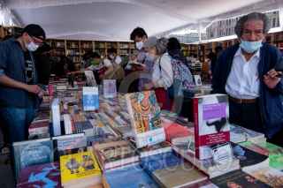 CIUDAD DE MÉXICO, 09OCTUBRE2021.- Miles de personas continúan acudiendo al segundo día de actividades de la Feria Internacional del Libro en el Zócalo capitalino. Entre conciertos, conferencias y más de 300 estantes los capitalinos podrán visitarla hasta el 17 del presente mes. FOTO: GALO CAÑAS/CUARTOSCURO.COM