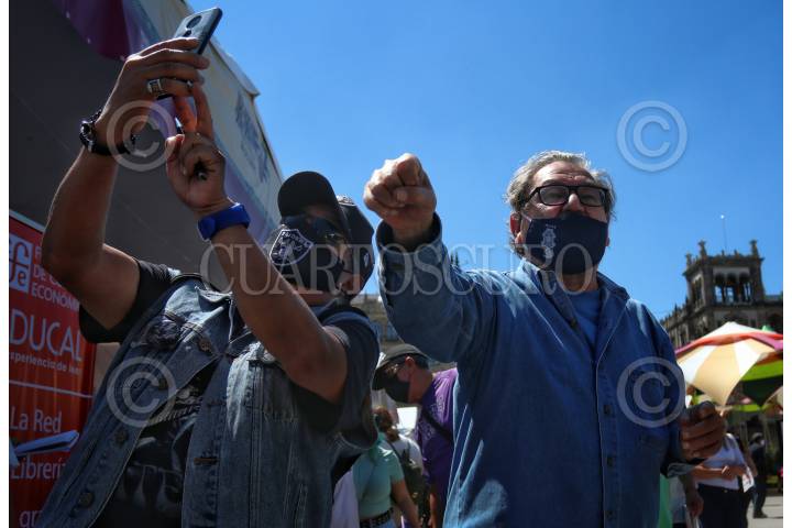 CIUDAD DE MÉXICO, 10OCTUBRE2021.- Paco Ignacio Taibo II, director del fondo de Cultura Económica, Felipe Ávila y Juan Carlos Ruiz, durante la charla "El cura Hidalgo" que se llevo a cabo en el foro Antonio Helguera como parte del ciclo de charlas y actividades de la XXI Feria Internacional del Libro en el Zócalo. FOTO: ANDREA MURCIA /CUARTOSCURO.COM