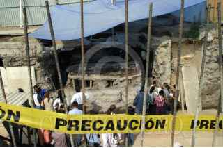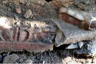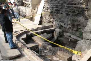 MÉXICO D.F. 13OCTUBRE2006.- Monolito descubierto la semana pasada en el predio de las Ajaracas ubicado a un costado de la zona arqueologíca del Templo Mayor. FOTO: GUILLERMO PEREA/CUARTOSCURO.COM