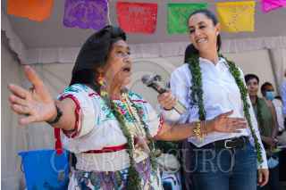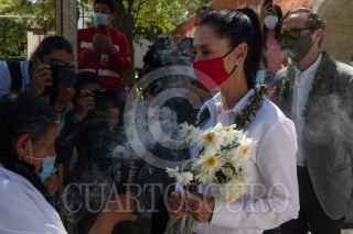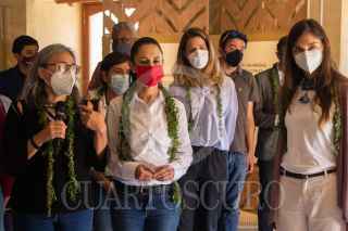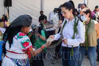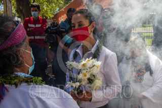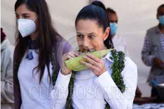 CIUDAD DE MÉXICO, 10OCTUBRE2021.- Claudia Sheinbaum Pardo, Jefa de Gobierno, encabezó un recorrido por el Cencalli "La Casa del Maíz y Cultura Alimentaria", en el Complejo Cultural Los Pinos. Ahí productores agrícolas de Tláhuac, Xochimilco y Tlaxcala le convidaron tamales, gorditas y mole, además de una limpia. FOTO: MOISÉS PABLO/CUARTOSCURO.COM