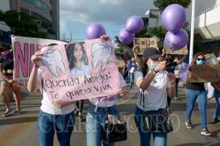 CULIACÁN, SINALOA, 10OCTUBRE2021.- Mujeres activistas y familiares de Kenya María, odontóloga asesinada hace tres días en este municipio, marcharon esta tarde en demanda de justicia y para exigir un alto a los feminicidios que se siguen registrando en Sinaloa. La joven odontóloga fue asesinada presuntamente por su novio, quien fue detenido y se encuentra sujeto a proceso. Hasta este mes suman ya 36 las mujeres asesinadas en el estado y Sinaloa sigue ocupando los primeros lugares en violencia feminicida en el país. FOTO: JUAN CARLOS CRUZ/CUARTOSCURO.COM