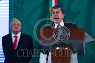 CIUDAD DE MÉXICO, 11OCTUBRE2021.- Andrés Manuel López Obrador, Presidente de México, durante la conferencia matutina en Palacio Nacional, en la cual explicó su proyecto de Reforma Energética. Lo acompañaron Rocío Nahle García, secretaria de Energía; María Estela Ríos González, Consejera Jurídica de la Presidencia; Marcelo Ebrard, secretario de Relaciones Exteriores; Ricardo Sheffield Padilla, director de Profeco; Manuel Bartlett, director de CFE, y Adán Augusto López, secretario de Gobernación. FOTO: MOISÉS PABLO/CUARTOSCURO.COM